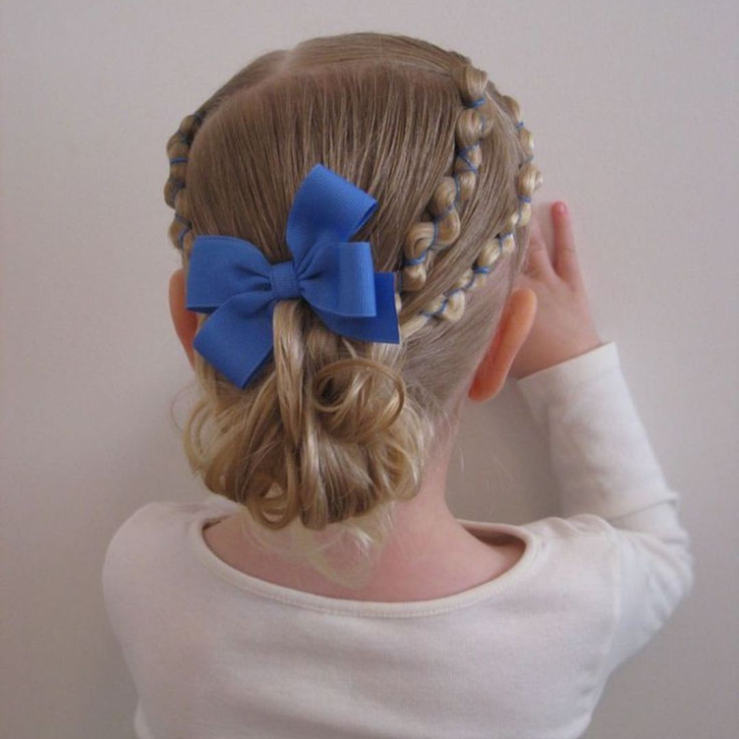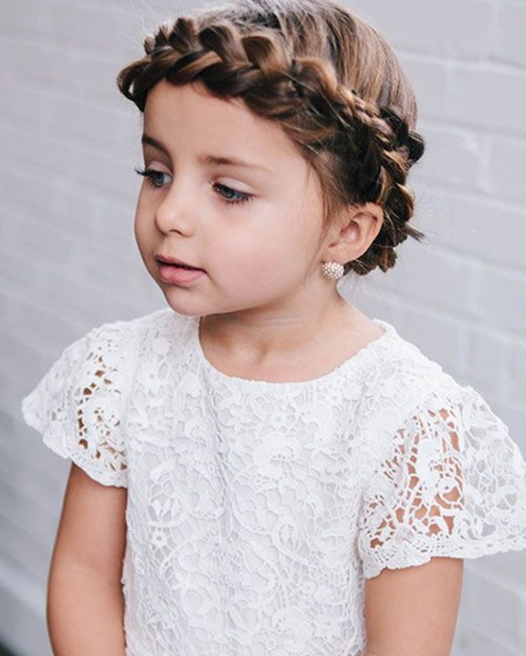 A small braided crown gives a princess-like appearance, which looks very nice in long and flowing frocks. Braid the front of the hairline loosely and tie it softly at the back. This is a style that will not bring hair in contact with the face and is also pretty at a wedding or even a formal event. The braid can be adorned with tiny pearl pins or flowery clips. Make sure that the braid is not tight. This haircut is both sophisticated and, at the same time, comfortable for your little girl.