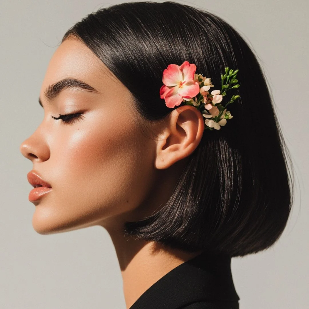 Side-Parted Bob with a Rose Accent