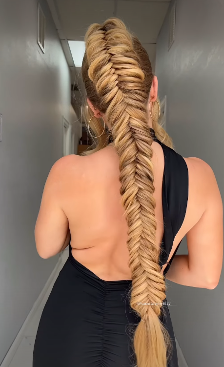 Credit: samirasjewelry A fishtail braid is a very stylish and elaborate hairstyle that provides texture and elegance to any gown. This style suits thdium to long hair and may be worn on one shoulder or at the back. It looks great with simple, flowing dresses or gowns with open backs, bringing out the details of the gown. Strands of hair are loose around the face, and accessories such as small beads or pins create amore elegantr appearance. The fishtail braid is a perfect hairstyle to use during weddings, proms, or garden parties and is both elegant and creative as an alternative to the traditional fishtail braid or updo.