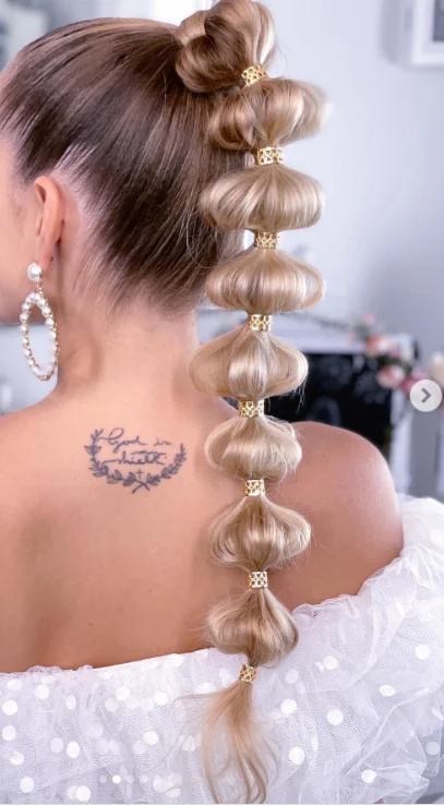 Bubble ponytail is a lively and fashionable hairstyle that has become popular over the last few years. It is made by plaiting the hair into a ponytail and attaching several hair ties to the ponytail. Each part is pulled out softly to create the effect of bubbles, which makes the hairstyle look quite peculiar and fun. This appearance would be ideal in informal parties, birthday parties, or during fashionable events. A basic ponytail is a basic hairstyle that can be customized into a bubble ponytail to make it interesting and yet simple to do.Shoulder-length waves that are textured