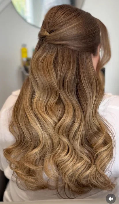 The half-up half-down hairdo is the best as it allows a woman to wear a perfect hairstyle that displays her hair length and, at the same time, appears elegant. Under this fashion, the upper part of the hair is pulled to the back and fastened using a clip, braid,d or twist with the remaining hair flowing freely down in soft waves. This style of hair would have a balanced and feminine appearance, and can be used in birthday parties, weddings, and celebrations. You can also use it to add elegant things such as pins or ribbons. The hair is styled to appear like a lively and party-ready hairstyle because of the soft waves that introduce volume and motion to it.
