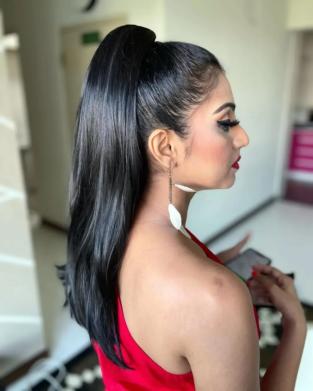 The high ponytail is sleek with a good amount of boldness and is a contemporary hairstyle that can be at once considered a cool hairstyle. This is a hairstyle whereby the hair is straightened and then pulled tightly in a high pony-tail at the top of the head. It brings out your facial features and looks beautiful with statement earrings or dramatic make-up. To give the hair a professional and polished look, there is the addition of wrapping a small piece of hair around the hair tie. This is the best hairstyle that can be worn during a cocktail party, night out, or dance party since the hair is ported out of the face yet still fashionable.