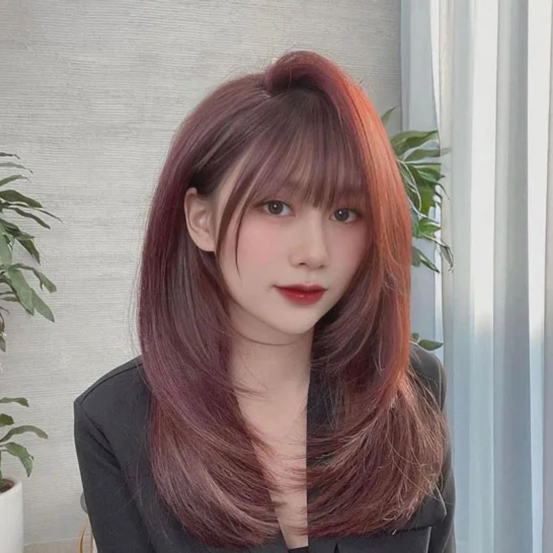 A layered Hime haircut consists of several layers of hair to create volume and dimension. Thick hair is ideal in this style since it makes it less heavy and gives it a natural flow. The face is beautifully framed with layers, and the hair has a dynamic, stylish look. Apply light serum and dry with the blow-dryer. Layered Hime is a sleek contemporary version of the classic cut, featuring movement and depth to the hair without losing its sophistication.