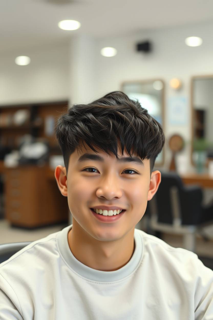 The French crop, but make it Korean. That’s how I explain this style to clients. And for chubby faces? Total win. I remember one guy who came in after a long work trip and said, “Give me something fresh but not fussy.” We gave him a textured French crop with short sides and choppy layers on top.