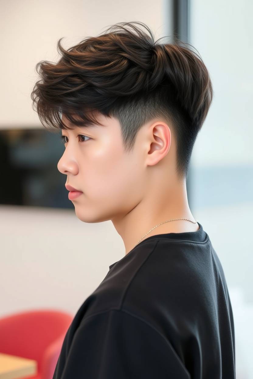 I once did this cut on a music student who didn’t want anything “too short” but still wanted his face to look less round. We kept the fringe light and textured, curled it slightly with a flat iron, and boom—he looked like he walked out of a Seoul street fashion shoot. Trust me, this style does wonders when paired with a bit of movement in the fringe. Wax or light clay helps keep the bounce without stiffening the vibe.