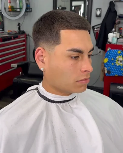 Textured crop with a low fade is a contemporary and fashionable hairstyle that emphasizes on movement and volume. The top is styled in short layers to give it a natural and messy appearance, whilst the low fade maintains the sides clean and sharp. This is an ideal style among men who desire a cool hairstyle that does not require much upkeep. It is particularly effective on thick hair, where the texture decreases the bulk and adds definition. To preserve the natural finish during the day, it is possible to use a matte styling product. It is an excellent option of a casual, young look.