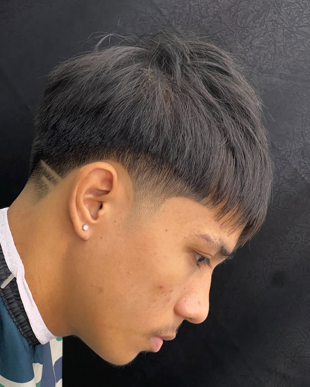 The fringe is parted on one side, and it forms a sharp contrast with the low taper fade. It also suits oval, round, or square faces and gives a young and trendy look. To hold the side-sweep fringe, it takes a medium-hold cream or pomade to style. The appearance is also versatile for both casual and semi-formal events and can be worn with straight, as well as a little wavy hair. The taper fade is kept to a minimum so that the sides are kept clean and professional, and the angled fringe provides the hairstyle with dimension, movement, and personality.