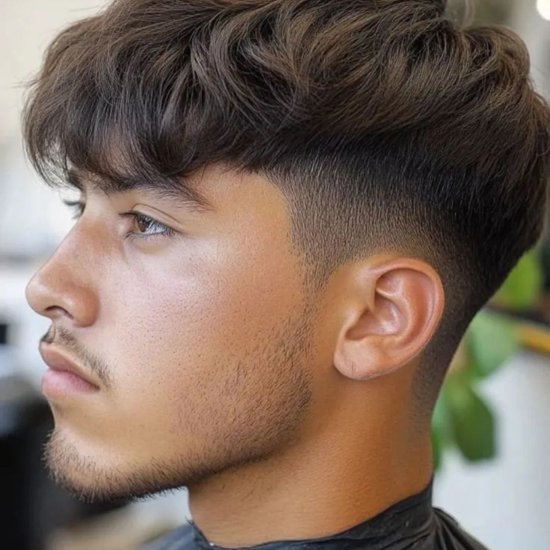 The disconnected fringe style puts a distinctive gap between the high-cut hair and the low taper fade hair. This is a bold cut of hair that emphasizes the longer hair on the front and the clean short sides. It is suitable for both straight and wavy hair, and it looks edgy and contemporary. Sustaining the disconnection requires specific trimming and medium-hold products to do the styling. The fringe may be run in its natural form or messed up. This haircut will fit fashionable people, as it focuses on personality but has clean, professional sides, thus fitting for casual and semi-formal events.