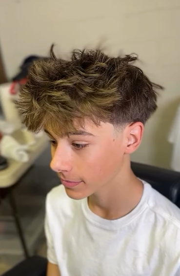 It is a combination of a low taper fade with a textured fringe to give a modern, casual appearance. The top hair is also cut in choppy layers, and this gives volume and movement to the fringe. It is universal and stylish and fits the majority of face shapes and hair types. Styling is the use of a light pomade/wax to add texture, but leave the hair soft. This haircut is the ideal haircut to wear when you just look messy and carefree, with a clean fade on the sides, and a top that is fun and athletic. Perfect for men who require a low-maintenance style.