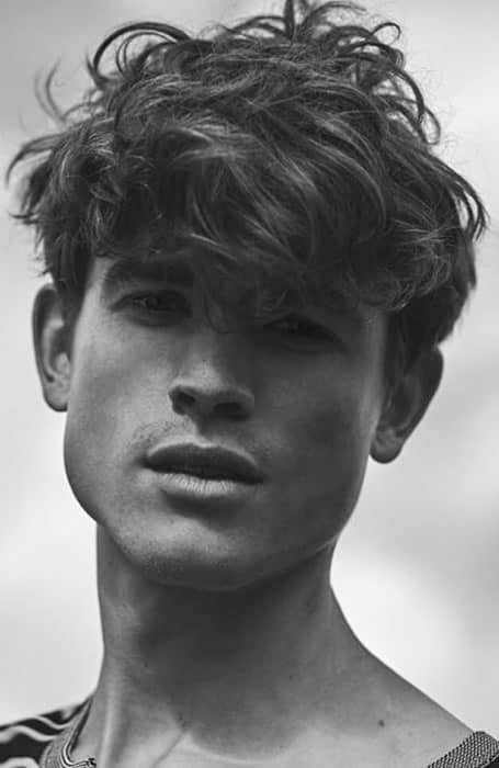 The curly angular fringe suits men who have natural curls and wish to add to a wide, round face. Curly texture is also soft and dynamic, and it decreases the width of the face and provides visual interest. The fringe may be left slightly longer or medium-length to brush against the forehead, and there are layers to control volume. Styling gels like creams that build curls but do not weigh the hair down are useful as they define the curls without pulling the hair down. The flattering effect of the asymmetry of an angular fringe, coupled with the natural curl shapes, is dynamic. The hair is styled naturally, and the face is proportionate, ideal when it comes to casual everyday wear.