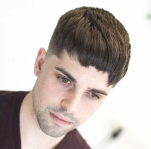 A short fringe Caesar cut is devoted to keeping the bangs as short and sharp as possible. This style emphasizes the forehead and gives short oval faces a clean cut, sharp frame. It suits men who desire to be bold and minimalists. The pointy fringe is defined as giving meaning to the facial features,s and it counts to match with fades or tapered sides. Little styling is necessary- just part the fringe a little farther forward and trim up the sides. The version is perfect for men who want to look presentable, cooler, and professional in the workplace, at a formal occasion, or in a casual environment.