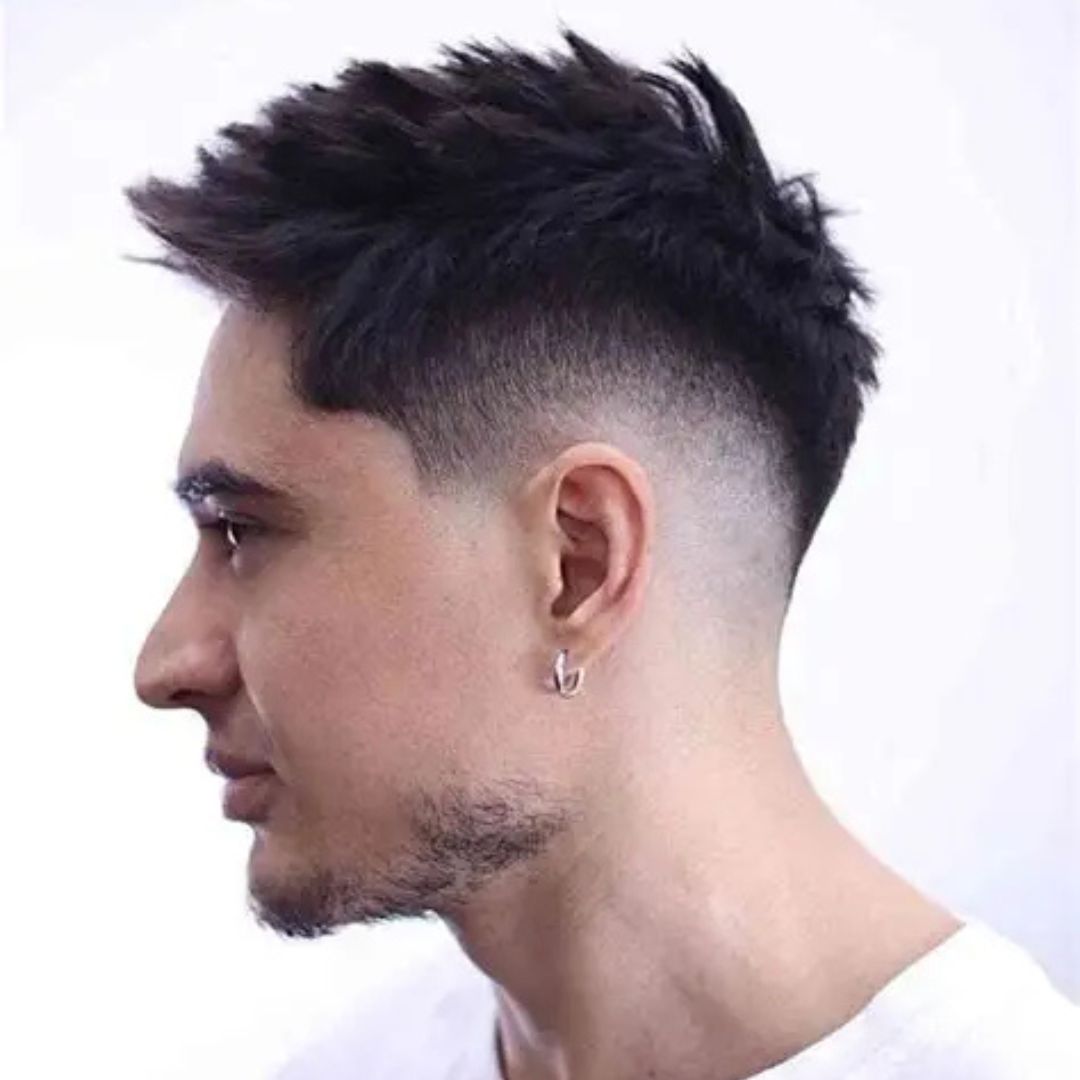 This dishevelled, shaggy faux hawk offers a casual, carefree look, yet even extends a round face. The top hair is left dishevelled and partially sp, and a matte styling gel is used to give a natural look. The sides are short with a tapered end that balances width and makes it appear more angular. This is a style that is used by men who like to keep their hairstyles that are low-maintenance and personality. It is appropriate to wear daily or during socialisation, or even in artistic places. The slightly dishevelled style is rather youthful and fashionable without sacrificing the face or fashion.
