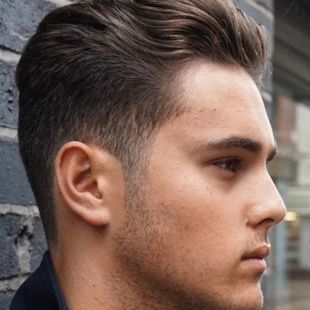 The interplay of combining the low quiff and gradual fading on the side gives it a modern and versatile look. The fade evaporates the volume of the sides, slightly emphasises the quiff to be slightly emphasised but does not make the forehead look wide. This hairstyle fits men who have straight hair or wavy hairstyles and can be adjusted to casual or formal events. A light styling product is used to preserve body and discipline without being stiff. Fades are trimmed regularly, and the quiff is maintained. The hairstyle is a combination of a heart-shaped face, and therefore, it suits well for men who desire a style haircut which is modern and stylish haircut to use in any environment.