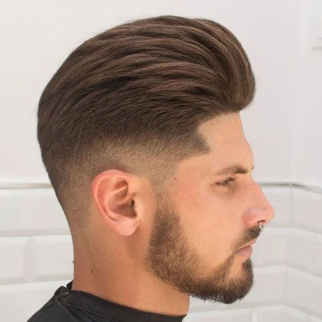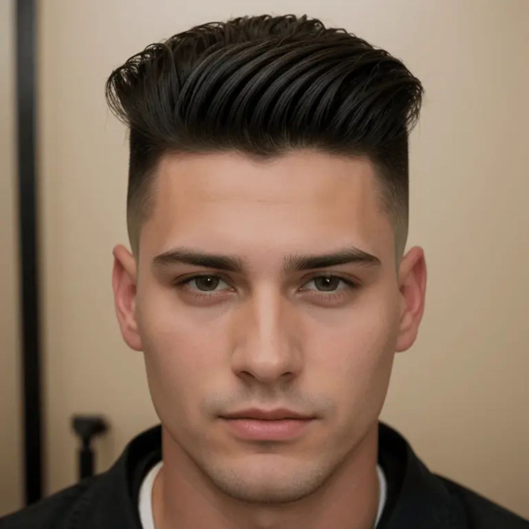 Fade pompadour is a style that uses a gradual cut on the sides of the hair, which is short on the sides and then becomes longer as we go higher. This enhances the height of the pompadour and fits well on the oval faces, as it gives definition to the facial features. It is also flexible, stylish, and modern ,and can be used both in the workplace and in a casual setting. Keep the top in place with a strong-hold pomade or a styling clay. The fade may be slight or it may be dramatic based on the preference. The gradient is maintained by regular maintenance so that the fade pompadour can be seen as a modern and dynamic variation of the traditional hairstyle.