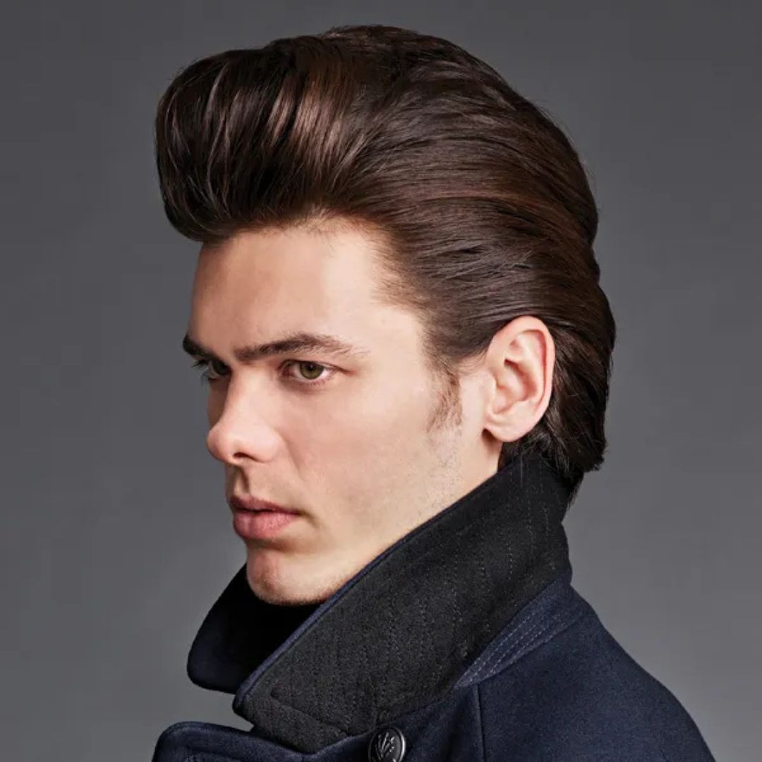 The slicked back pompadour contains the conventional height but is done with a smooth, glossy appearance. A gel or a strong-hold pomade is used to comb hair backwards to give it a smooth and sophisticated appearance. The style is applicable to oval faces, where the focus is on the natural symmetry and, therefore, lengthening of the features. It is an elegant and sophisticated garment that is best fit for formal engagements, in the office, or during a night out. Tapers and faded sides can be done to create a contemporary touch. This hairstyle is very expensive in terms of styling and maintaining the glossiness. It is ideal since it gives a modern twist to a classic look for men who want a polished look.