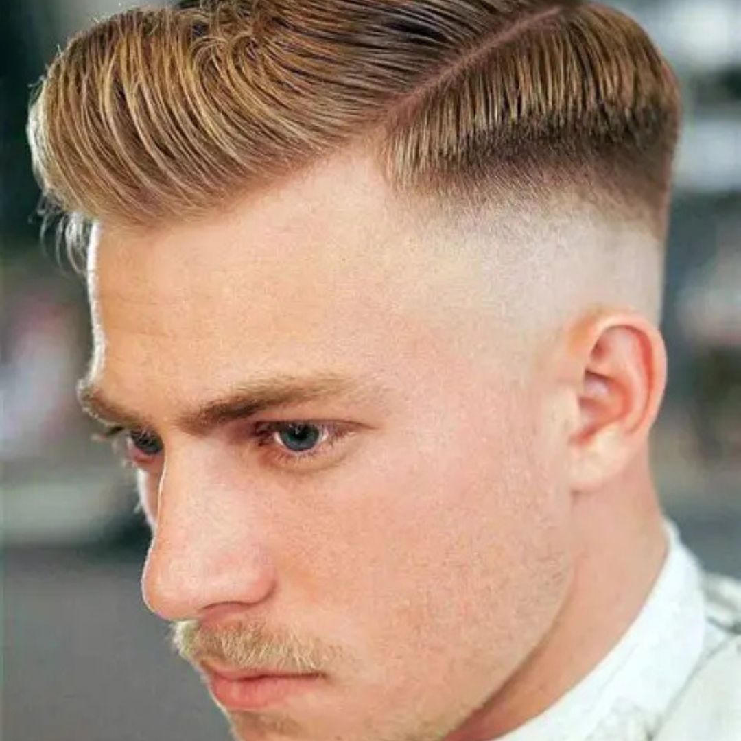 A side part to a pompadour brings in form and sophistication. The section forms a specific line that helps in increasing symmetry on an oval face, leaving the top voluminous. This difference is flexible and can be used in the office, at a wedding, or going out. Apply wave hairspray and medium-hold pomade to create a cool appearance. The side section is more stylish, with the option of slicked-back or slightly messy hair. It also frames the face, bringing out cheekbones and jawlines. Having been well maintained, this fashion is a mix of elegance and contemporary fashion, and thus it is a favourite among men who want a sophisticated look.