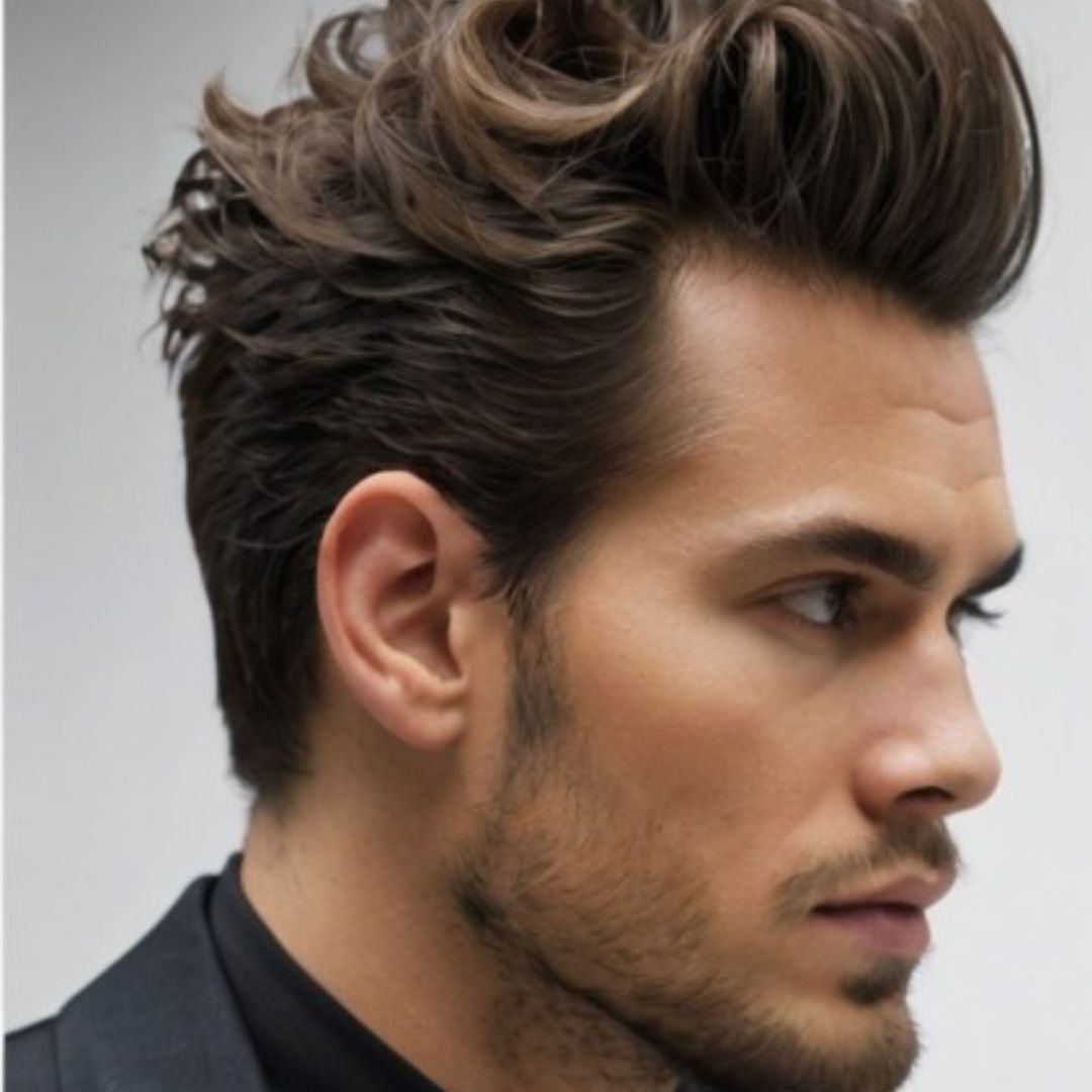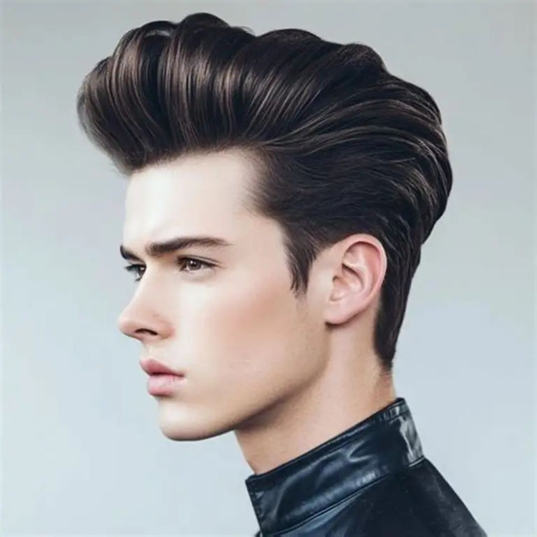 In men who want to appear relaxed and yet fashionable, the messy pompadour is textured, and it does not have the overly-polished appearance of the smooth pompadour. Natural waves or curls complement the style, adding movement and depth to the top. The ischew texture cushions the harsh lines of a square-shaped jaw, forming a harmonious shape of the face. The sides are short and faded to contrast, and the top is released loosely using matte clay or texturizing spray. This is a good variation when wearing daily and even in casual outfits. It is effortless and does not need to wear heavy makeup like the other ones, as it has a contemporary flair for individuals who need a more casual style.