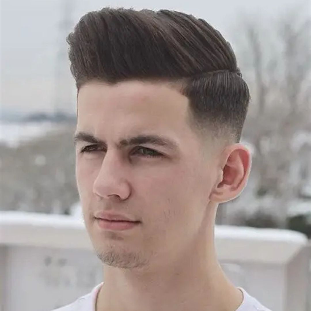The traditional high pompadour has a huge height at the top, which is stylishly cut back in order to look for a classic and elegant finish. The version is very effective on square faces since the added height stretches facial features and pulls the gaze upwards. The sides are not very long and dark to ensure the balance. Strong-hold pomade or gel is used to ensure that the structure is held together during the day. The classic pompadour is perfect when you are attending a formal event, business meeting, or just want that clean cut style look with the precision of modernity. It goes hand in hand with a well-trimmed beard or clean shave, as you wish.