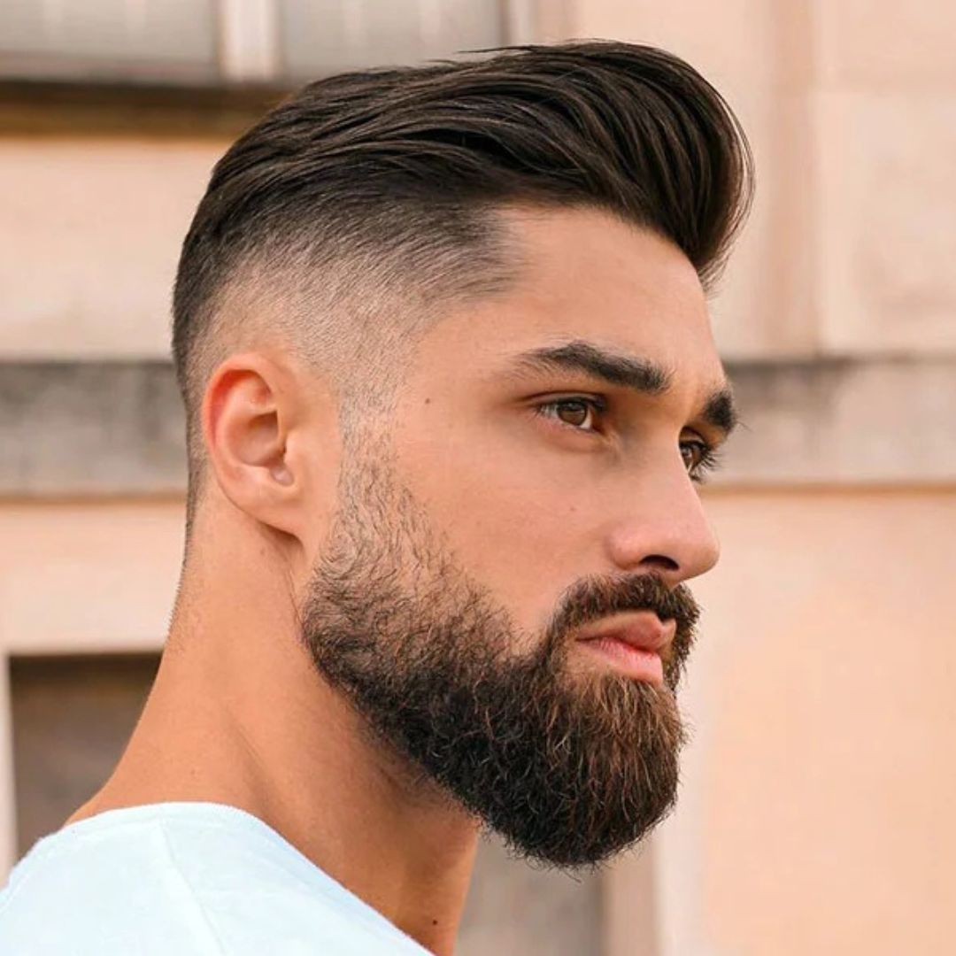 This beard style can be combined with a matching hairstyle that gives the upper part of the face volume or breadth so as to form a balanced and balanced look. Hairstyles like quiffs, pompadours, or side-swept cuts are particularly effective since they raise the forehead and level the jawline, making the face more symmetrical.