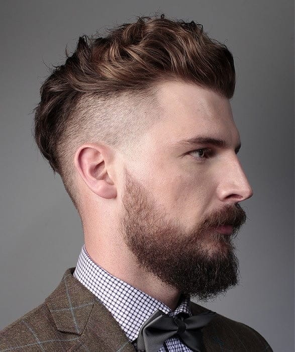 A boxed beard is not too thick but arranged lightly, and this suits an ear-shaped face because it shapes the jawline without dominating it. Combined with a large pompadour, it gives length to the forehead, with the fullness of the lower face evened out. It is a very confident and sophisticated style, ideal when one is attending a social gathering or in the work environment. The smooth finish of the pompadour balances the hairy ends of the beard, which depict balance in the proportion of the face. Hair products to make the hair thick and keep its shape all day long will help to keep the hairdo intact and the jaw line straight and symmetrical with the help of frequent beard cutting.