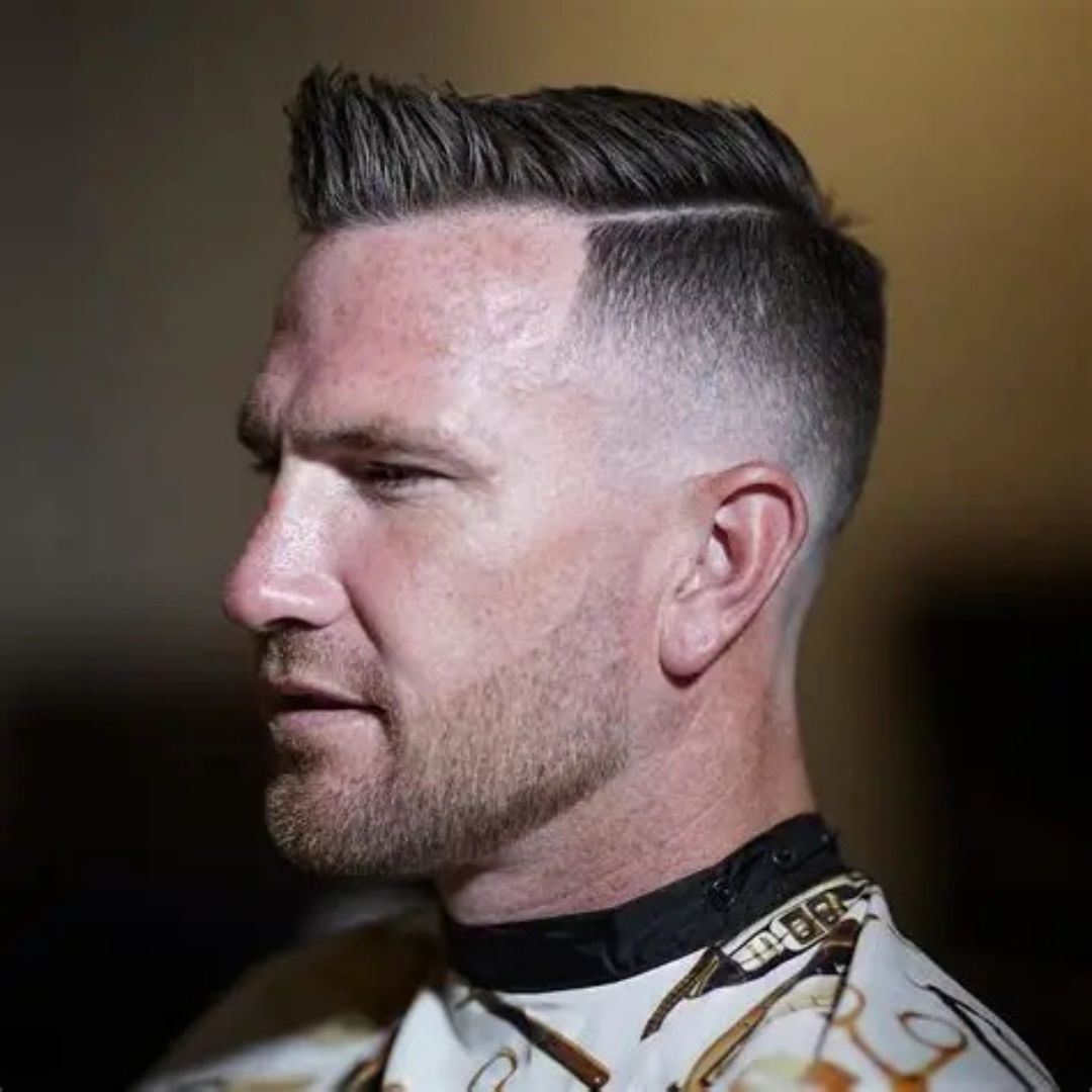 Fading sides of hair will be a revision of the old style by a blend of short sides slowly becoming long tops. The level of fades can be low, mid-range, or high according to your taste. This is a haircut that gives an oval facial appearance, as it highlights its natural balance. Trace the section with a comb and apply a lightweight holding product. It fits well both on formal and informal occasions. It needs regular maintenance to maintain the fade. It is extremely adaptable and it matches well with beards, moustaches, or clean-shaven appearances.