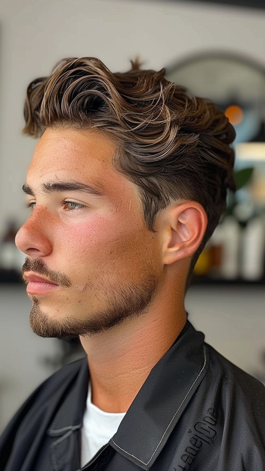 A textured slick back introduces volume, movement, and a relaxed feel without strict smoothness. It’s excellent for men with thick or wavy hair who want a naturally rugged style. Use matte clay to create separation, lift the roots gently, and sweep back with fingers instead of a comb. This version softens the angular structure of a square face and avoids appearing too harsh. The textured slick back transitions perfectly from daytime work to evening outings. It requires minimal maintenance and delivers an effortlessly cool aesthetic with modern appeal.
