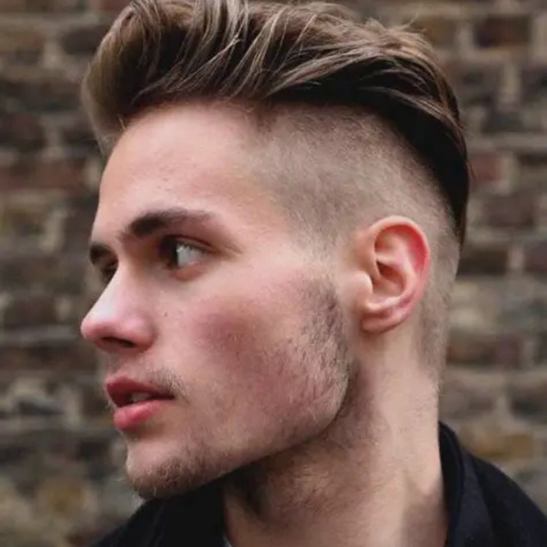 The disconnected slick back features a sharp separation between long top hair and short or shaved sides, delivering a dramatic, trend-forward appearance. Perfect for men who enjoy being noticed, this style elongates the face and defines strong features. Use pomade for a high contrast polished finish or matte clay for textured flair. Barbers cut the division intentionally straight for a bold impression. Ideal for influencers, athletes, and creative individuals, this style demands confidence and strong styling control. Schedule regular trims to maintain crisp edges and shape.