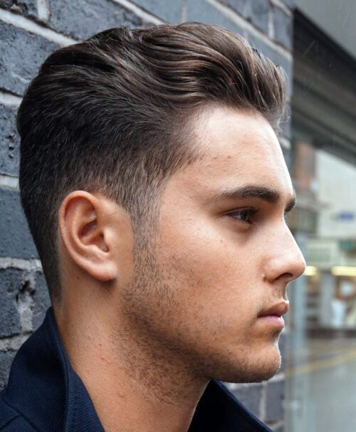 The medium-length hair gets the dimension and the texture of the layered slick-back medium cut. Layers make the hair less bulky an,d the hair can run naturally without being slicked back, which suits the pear-shaped faces perfectly. It shapes the wider jawline without being too flat and rigid. Styling: This is the use of a light cream or paste to hold and create natural movement. This hairdo fits both men with thick or wavy hair and gives them versatility with respect to both formal and informal places. Frequent hair trimming helps in making sure that the layers are not distorted, giving a smooth and fashionable appearance all through the year.