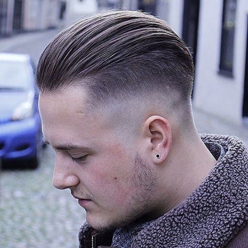 The fade slick-back medium cut boasts of medium-length hair on top that has a gradual fade on the sides. This has a sleek, contemporary profile, highlighting the upper part, with the ratios of a pear-shaped face. The fade may be low to high, and it can give a slight touch without giving the total impression. To look natural, one needs to brush their hair with pomade or styling cream, and at times, rough it up with fingers. The cut suits casual, work, orfashionable social environmentst so easily and is ideal among men who desire an overall, easy-to-clean and versatile style.