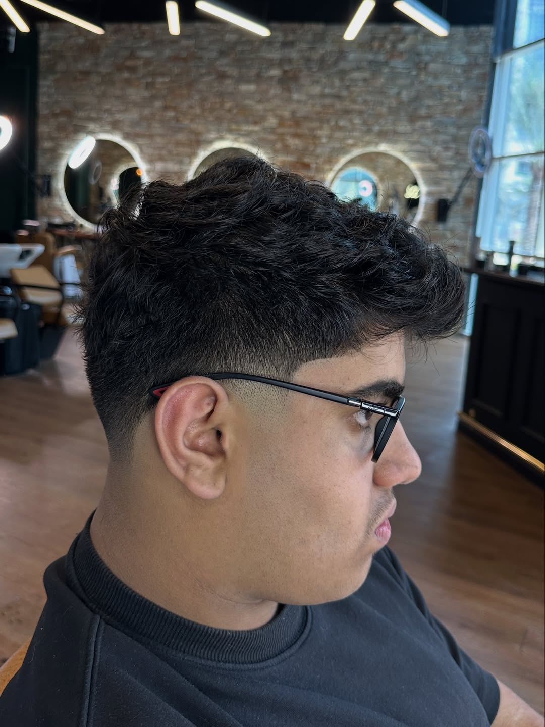 The tapered spiky cut is a gradual cut to reduce hair on the top to sides to give a sharp and clean cut. The top is textured and spiked to give it height, whereas the sides and the back are faded slightly. This mixture strikes a balance between roundness and brings structure to the face. It is a matte wax or clay, which does not polish the spikes and leaves them dry and hard. The low-maintenance, all-purpose, and professional taper spiky cut fits very well for the male gender who would desire a contemporary and stylish appearance that is easy to approach and still attractive on the round faces of the person.