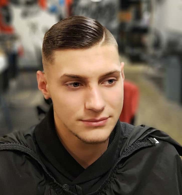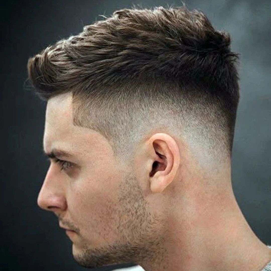 An angular cut crew with a fade provides a low-maintenance but highly effective solution for men who have soft, round faces. Traditional crew cuts may seem too round, and with the addition of sharp edges and a fade, there is structure and definition. The top is a little longer to add a slight height, ht whereas the faded sides maintain a slimmer face. It is a perfect hairstyle among those men who like a clean and masculine appearance with little hairstyling work. Even some matte products can add texture, but not complicate the style.