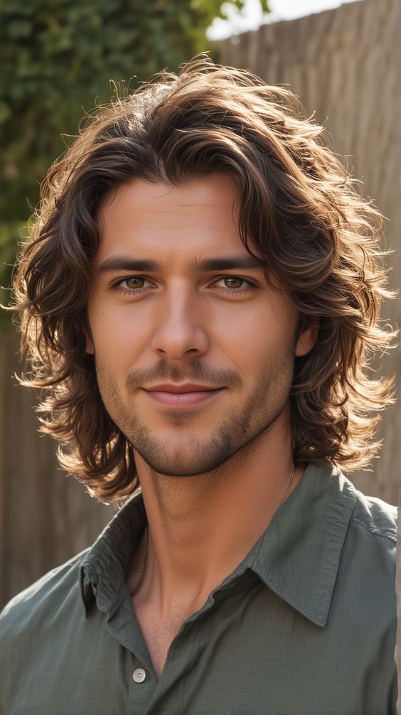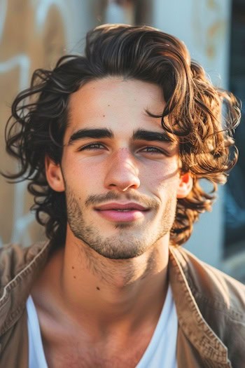 The shag hairstyle complements natural wavy hair because of its jagged and layered edges. This style works in a way of providing free-flowing texture and volume on the sides of the jawline, and it balances the wider forehead. The layers of hair are wavy, so that the top does not make the hair look too heavy, and the bottom of the hair should move to create a free and casual style. There is very little styling that is needed, and just light cream texturising sprays to make waves. Shag cut is ideal for men who want a low-maintenance, stylish appearance that can be worn in all-day and semi-formal gatherings. Its messy, natural look flattens the faces on the face, providing a modern and youthful benefit.