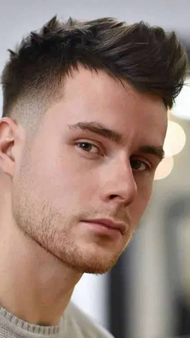 The tapered fade spiky top is an appropriate top that any man can use with a soft, round face. The tapered sides make the face narrower, and the spiky top makes it longer and more structured. This blend produces a normal, long-shaped look that enhances the facial lines. The style is very versatile as it is currently used in both professional and casual settings. It fits straight hair or slightly wavy hair textures, and is easily styled using a light matte wax or pomade. Frequent cuttings are used to keep the clean fade and dishevelled spikes.