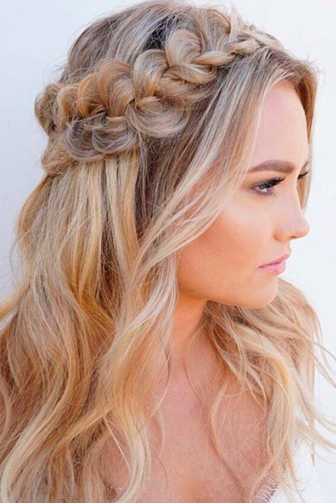 A large rumpled half-up look and a small braid. Get a piece of hair that is very small, and make it loose and use a claw clip to hold it and the top half of your hair in place. Keep the rest of the hair long. This is an ideal casual or semi-formal style. It also makes it boho-chic, and it can be used on straight, wavy or curly hair. Soft curls have been added to the lower half to give it texture. A medium claw clip works best. It is a new, practical and fashionably messy hair style.