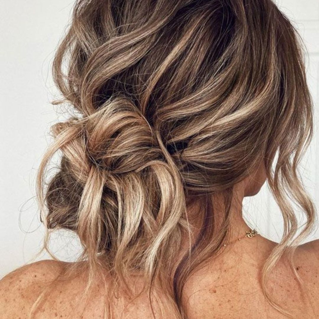 Messy buns are low and casual but elegant. Bring your hair together behind your neck and loosely form a bun. Affix it with a claw clip and drag a couple of strands on your face to make it softer. This type suits hot days, or when you want your hair off your neck. It fits any hair length, although it is best suited to medium-length and long hair. Add volume-tease hair and then twist. Unkempt low buns are simple to wear, convenient, and everyday.