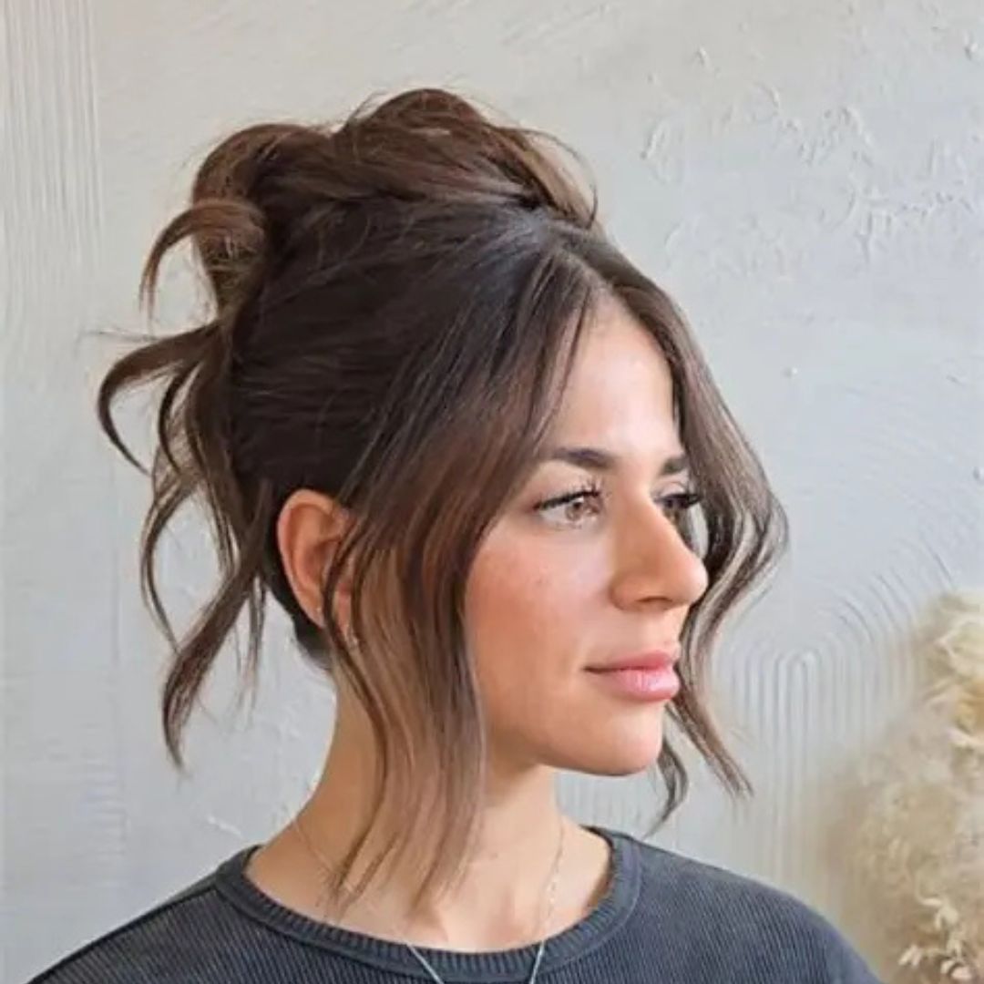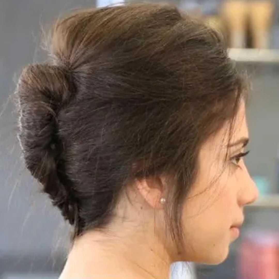 This version is superior in terms of softness and elegance, in case you have side bangs. The twist has been left a little loose, with the bangs beautifully encircling the face. This produces a young and fashionable appearance. It is ideal for date nights, receptions, or official office events. Slightly loosen the twist so as to retain volume. Tuck bangs with a slight curl upwards. It is a well-balanced hairstyle, as it is neither sophisticated nor too casual to be worn on a variety of occasions.