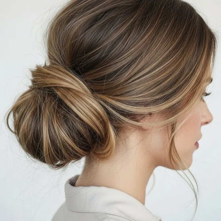 Side-Part Messy Low Bun