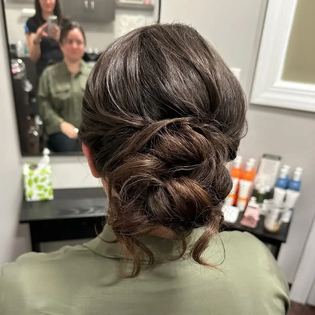 The messy low bun is a modern version of the twisted bun, which gives the original bun volume and texture. Rather than just twisting the hair, one twists parts of the hair before pinning it to the bun. These coils form a stratification effect that renders the hairstyle more elaborate and advanced. It is a great mix of office dressing or evening out to be dressed simply yet smart. The curvy components provide the bun with a distinct flavor without losing the leisurely and casual look, which is a characteristic feature of the dishevelled bun style.