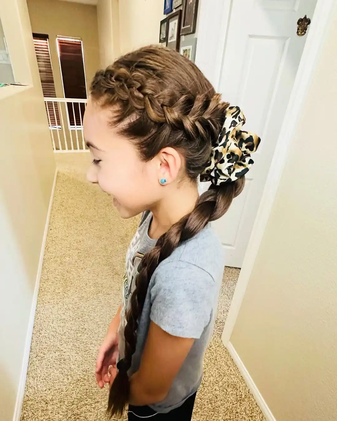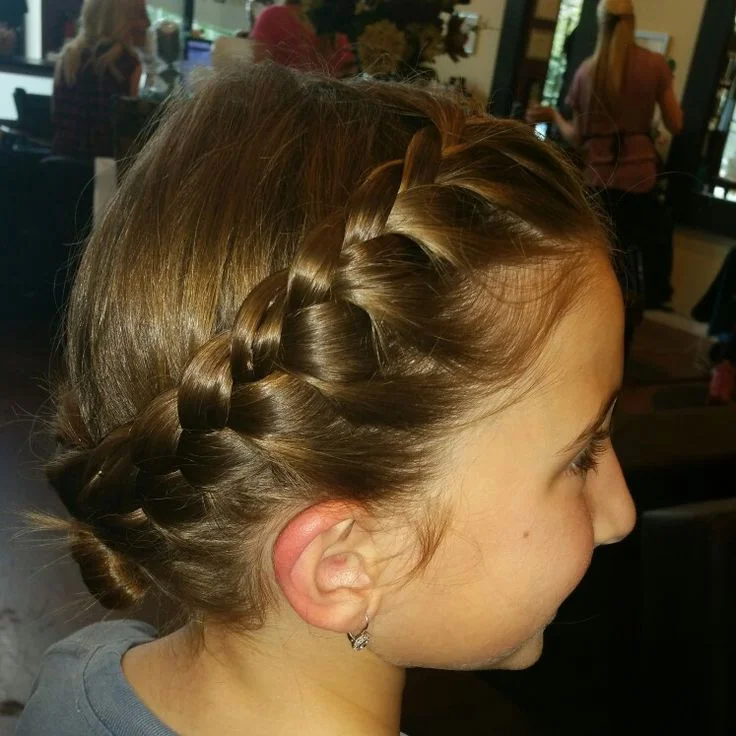 The hairstyle, which is the braid crown, appears so pretty as a princess and is suitafore on a special event such as a school dance. The two braids that are formed at both sides of the head are then crossed over the top of the head to form a crown-like hairstyle. This helps to have the hair well out of the face and yet appears stylish and elegant. The braided crown is suitable for medium and long-haired hair. One may also give the braid a pretty flower, a sparkling pin, or a lip to make it look more party-like. This hairdo is easy to dance in and has a romantic appearance.