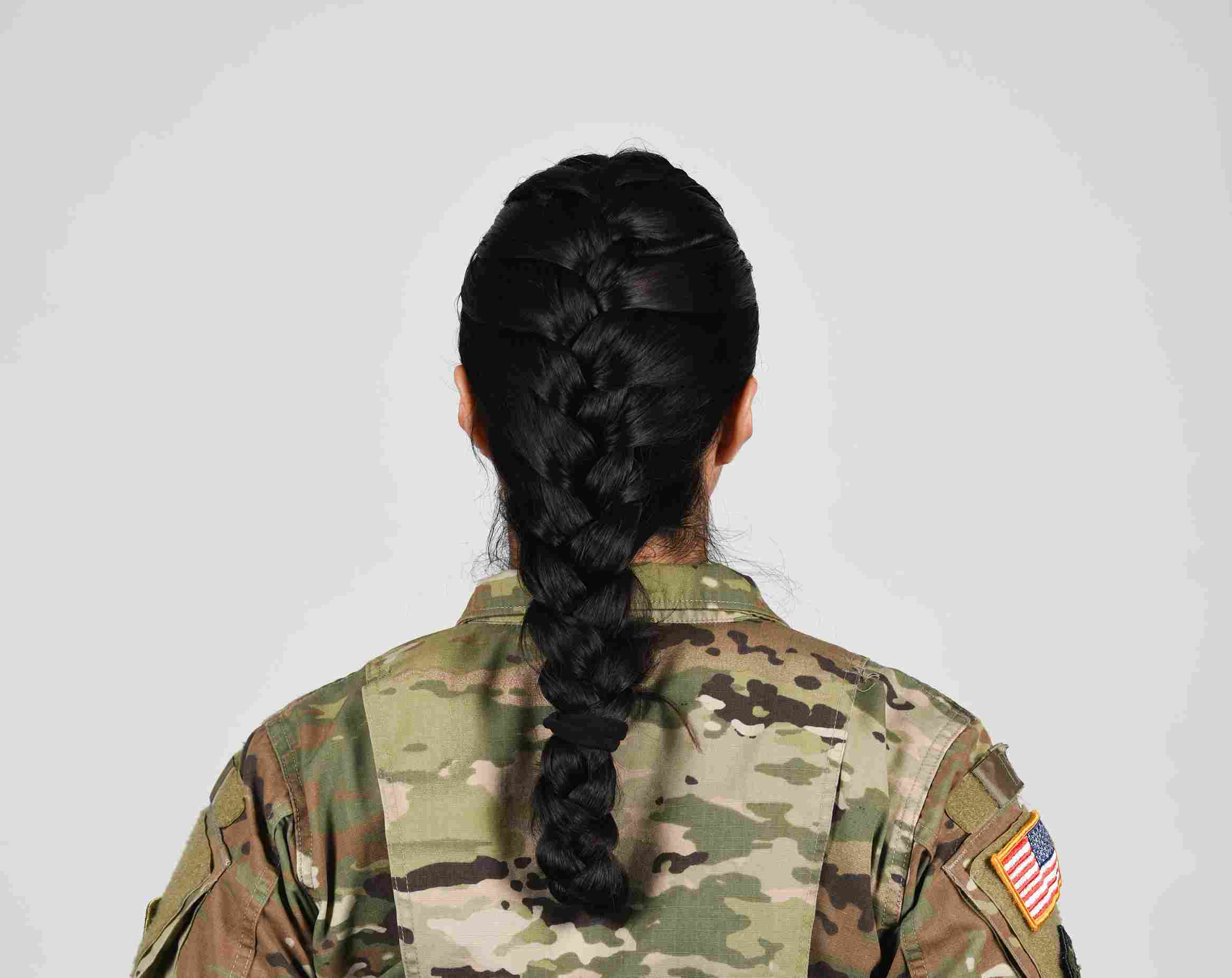 French braid is one of the styles that the military women prefer to use so that they leave their hair on their hair and not on their face. It works well with medium and long hair, and gives the hair a sleek, professional look. Braid back, starting right at the top, all the way to the end, and then use a small hair tie. This style is popular due to its use under helmets and headgear and thus is a good alternative for active-duty soldiers. It helps to avoid entangling and maintains the necessity of frequent fine-tuning. To achieve even more tidiness, you can even twist the end of the braid into a little bun at the back.