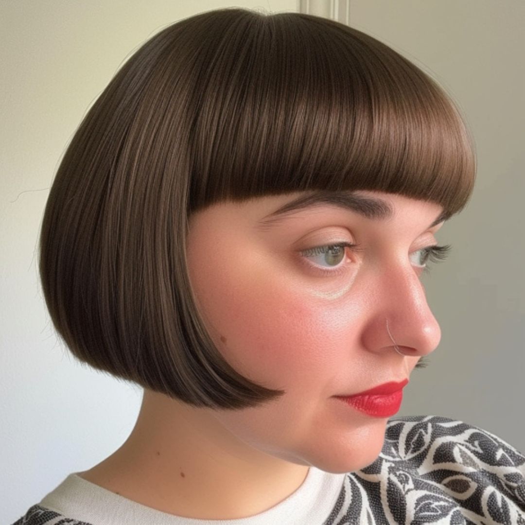 Blunt cuts and a pageboy haircut go hand in hand to give a daring, edgy look. The bangs may be straight across the forehead, placing the eyes in a frame, and highlighting the facial features. This style suits medium and straight hair and gives it an appearance of youthfulness and modernity. Angular faces can be softened with blunt bangs, which can be used to contrast rounded or oval face shapes. The process of styling needs some maintenance to keep the bangs level and smooth, yet the overall look is rewarded. It is a stylish version of a pageboy, which is perfectly fit both in everyday life and in the statement style.