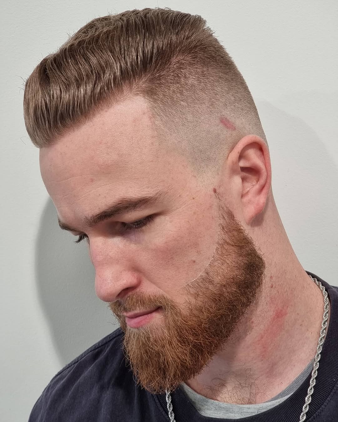 The Viking hairstyle is an undercut hair in combination with modernity. It is characterized by tight sides that have been shaved off or faded away, but the top is long and flowing, making it ideal to create a dramatic effect. It is an effective style among men who would like to possess a smart and rough appearance, but not to lose length. The best part of the head can be cut in many different ways, loose and messy, slicked back, or a bun or a ponytail. This cut is paired with a fat, well-shaven beard, which adds to the rough Viking look. It suits medium to thick hair types and is not difficult to maintain by having regular haircuts, which is why it is a good option to wear daily.