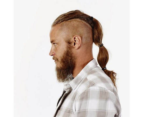 Viking ponytail with undercut is an aggressive and useful one. The sides and the back are shaven or trimmed very short, but the top is long and pulled up in a high pony-tail. This high contrast gives a striking, conspicuous appearance that brings out facial features and will go well with tattoos or piercings. It works well with men who wish to have their hair trimmed and dazzle length and strength at the same time. The undercut also requires regular cleaning, though it is easy to style, as all one has to do is tie the top hair, and you are fully equipped to rock the contemporary Viking style.