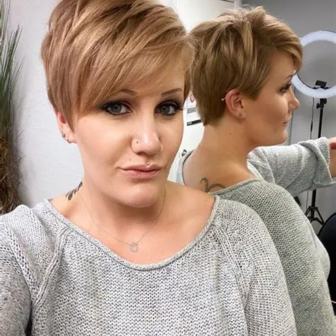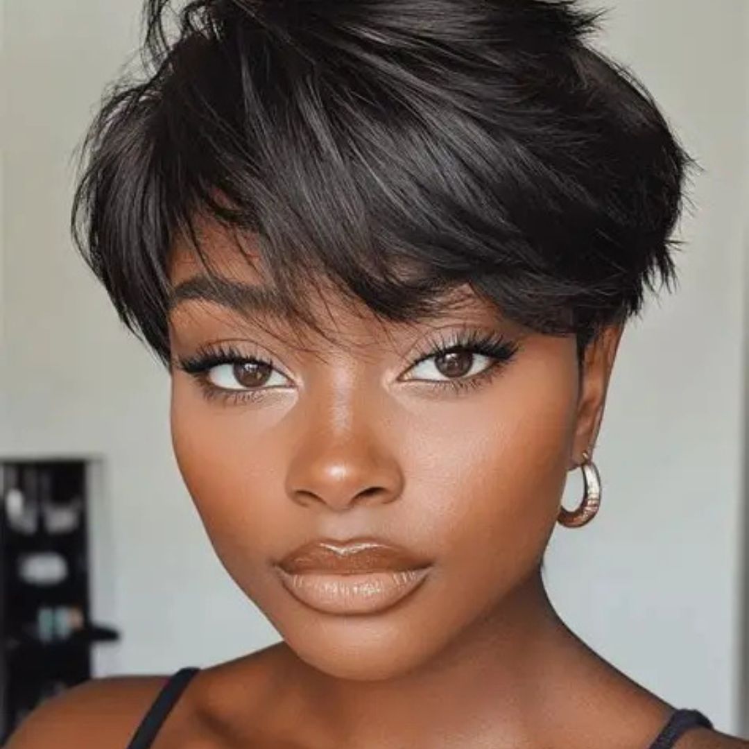 The Tousled Mushroom Pixie is laid back and easy-going going and is good when one is in casual and daily looks. There are some layers all lying a bit dishevelled but looking youthful and sportive. Volume and definition can be added with the help of a texturizing spray or mousse. This is a perfect style with fine or medium hair, where it is possible to move without any effort. Tousled Mushroom Pixies match different face shapes and can be easily dressed up in the case of a simple outing, weekend outing, or other socialization. It fuses compatibility and style, thus it has been a favorite among women who need a short, fashionable, and easy cut haircut.