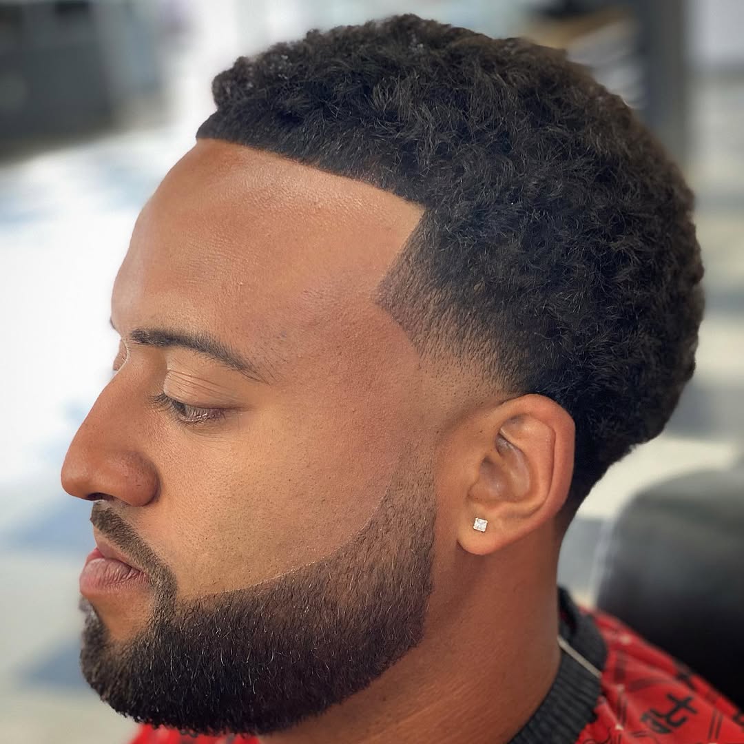 The curly fade temple is a contemporary and neat natural hairstyle. The side is faded towards the temples co concentrating on the longer curls in the top. It is a multipurpose cut that can be used in a professional, casual, or creative environment. The process of keeping this hairstyle requires curls to be kept moisturized, curl creams to add definition, and trimming to keep the fade sharp. It is suitable for men whose curl pattern is tight or loose, and it boosts the natural volume of hair. The temple fade is stylish and old-fashioned, so that men could demonstrate their natural texture and at the same time preserve the overall appearance of the item as clean, stylish, and fashionable to wear daily or during some special occasions.