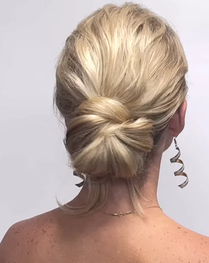 A knot bun is a trendy and contemporary updo that gives a sort of creative touch to traditional buns. It entails the process of tying pieces of hair in knots and fixing them into a bun form. The style of hairstyle is minimalistic but conspicuous, so it may be used at any workplace, either creative or relaxed. It offers an exclusive touch and holds the hair down perfectly. The knot bun is an ideal knot that can be used by women who desire to explore their style without necessarily looking unprofessional.