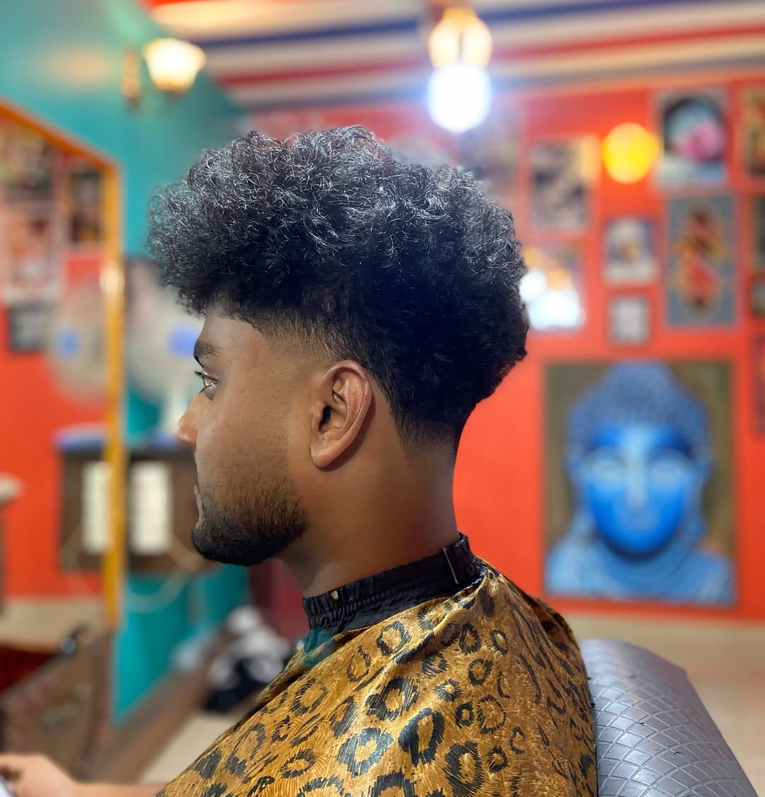The afro hair is a traditional hairstyle among blacks that is oval-faced and modern. The afro left longer on top and shorter on the sides gives a more balanced appearance and highlights the facial features. The taper makes the style workable and hairy, whereas the top gives it body and character. It is a good style that suits natural hair textures and can be adjusted to different lengths or curved edges. Frequent moisturizing and combing can be done to keep the curl intact and avoid dryness. The tapered afro is a classic choice that combines tradition and modernity, which makes it an ideal choice to be worn on any occasion.