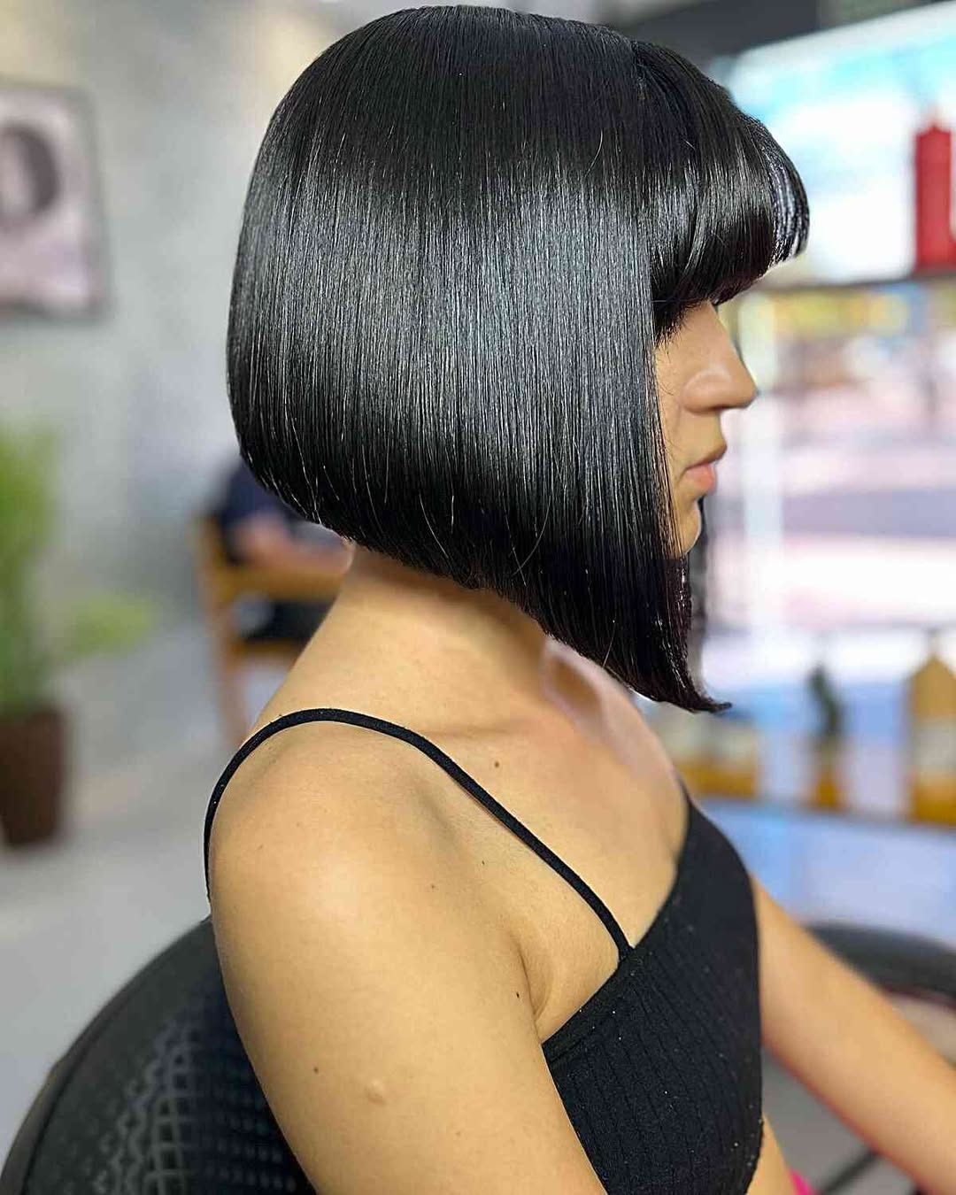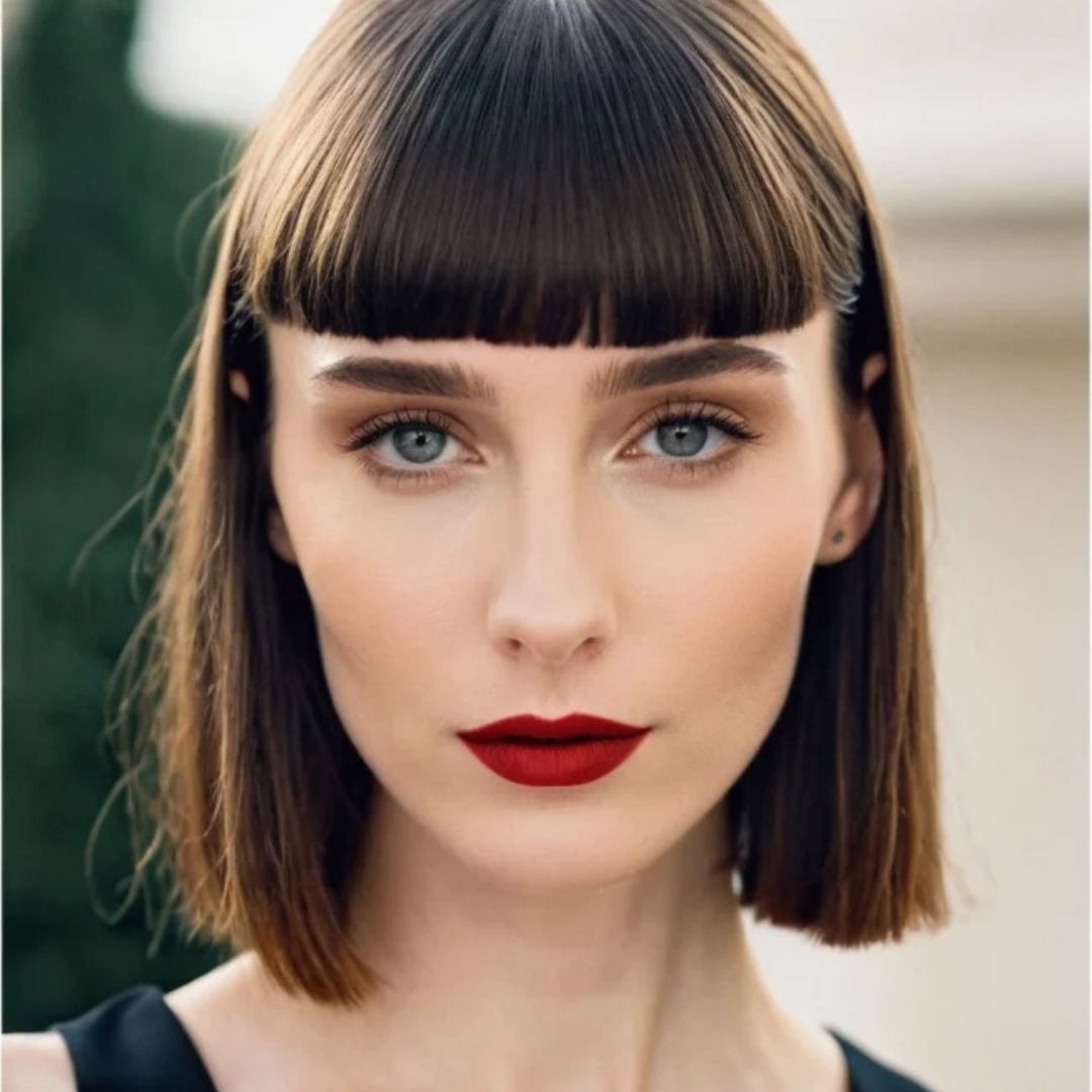 Swept bangs coupled with a pageboy hair cut to the hair will provide a fresh and modern look to the traditional style. The bangs are delicately hugging the face, and the ends of the bangs are turned inwards, keeping the pageboy shape. This appearance flattens out the facial features and gives the hairdo volume. It fits oval, round, and heart-shaped faces, which makes a lasting balance. Styling involves using the blow-dryer to make the bangs fall into place and to add volume at the ends. Side-swept bangs in combination with a pageboy cut are perfect and suitable for women who prefer a versatile appearance, which can be worn on workdays, when going out with friends, or at other informal events, combining sophistication with a certain playful aspect.
