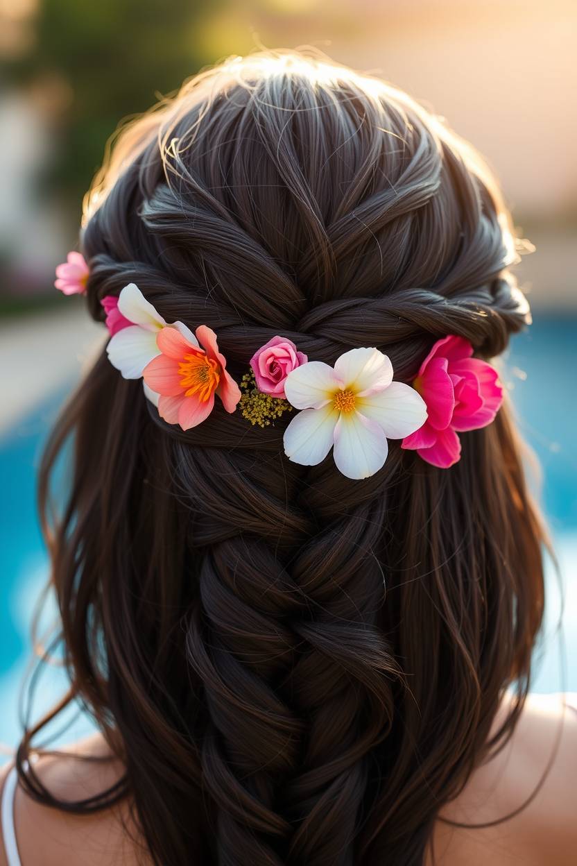 I especially love how this looks when hair’s got a bit of wave to it, either natural or from drying after a swim. You can even tuck in little hair rings or beads if you’re feeling creative. In my opinion, this one’s perfect if you’re heading to a pool party where there’ll be pics involved. It’s low-effort but still polished. A little beachy, a little romantic—what’s not to love?