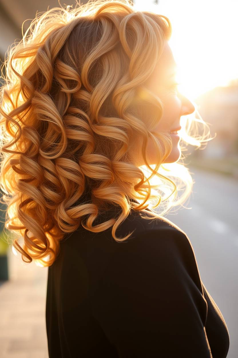 Copper blonde curls are pure fun, and I’m speaking from experience — styling this feels like painting with light. One of my regulars has natural curls, and we decided to warm them up with copper blonde tones. She told me later her grandkids said her hair looked like “fire in the sun,” which I took as the highest compliment. The color just makes every curl stand out.